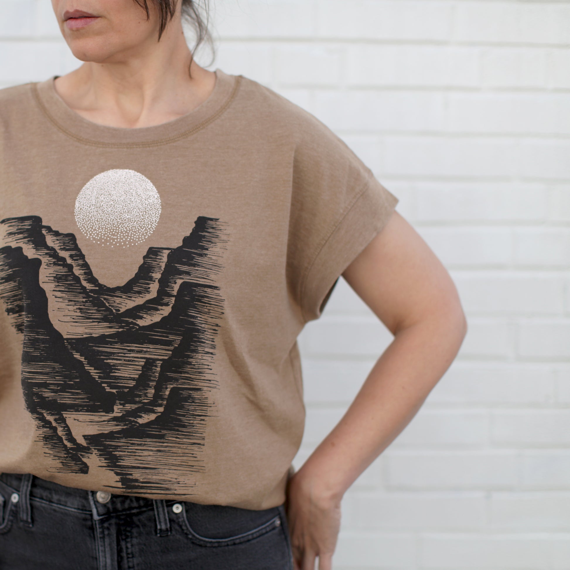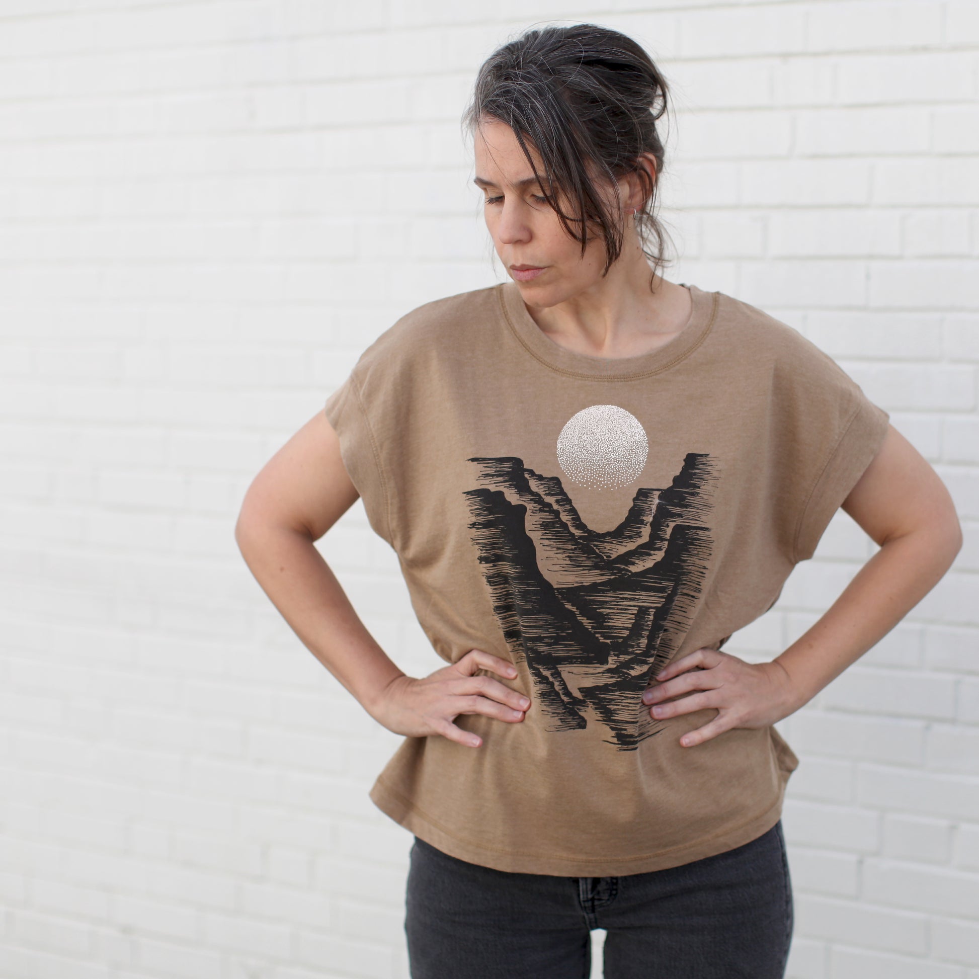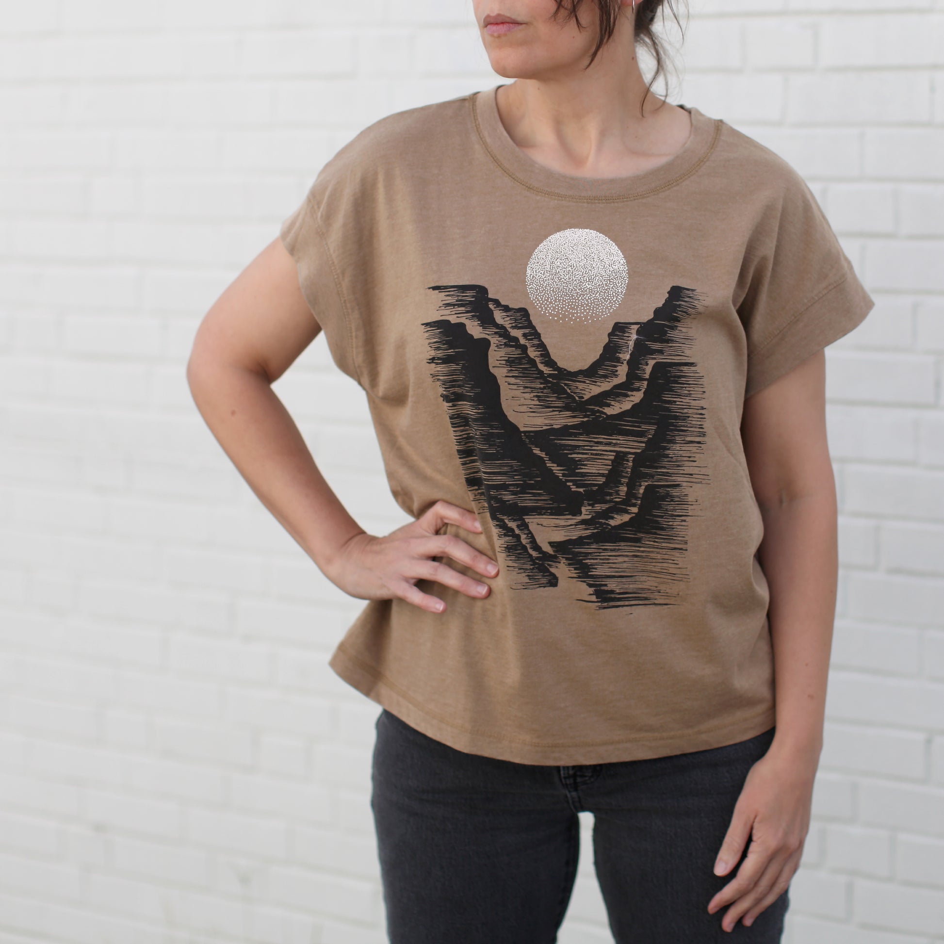 Moonrise Desert Canyon Loose Fit Boxy Top in Camel Brown